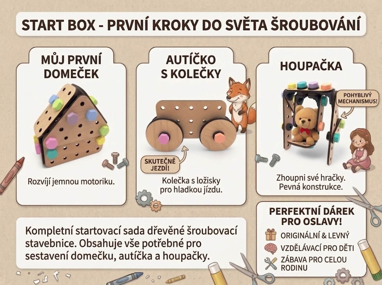 Start Box je navržený tak, aby si děti mohly tvořit samy nebo s lehkou pomocí rodičů. A hlavně aby to byla zábava!