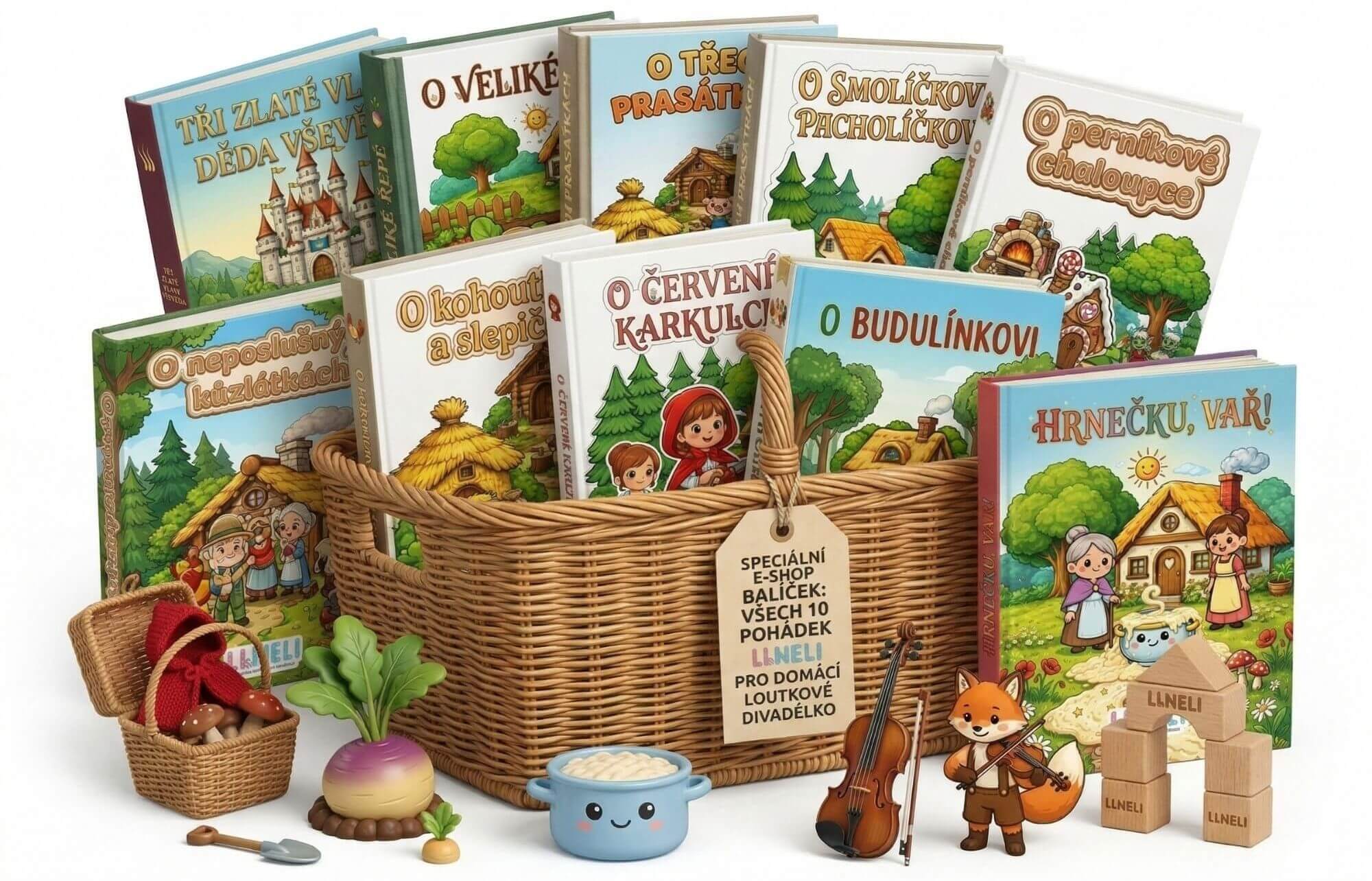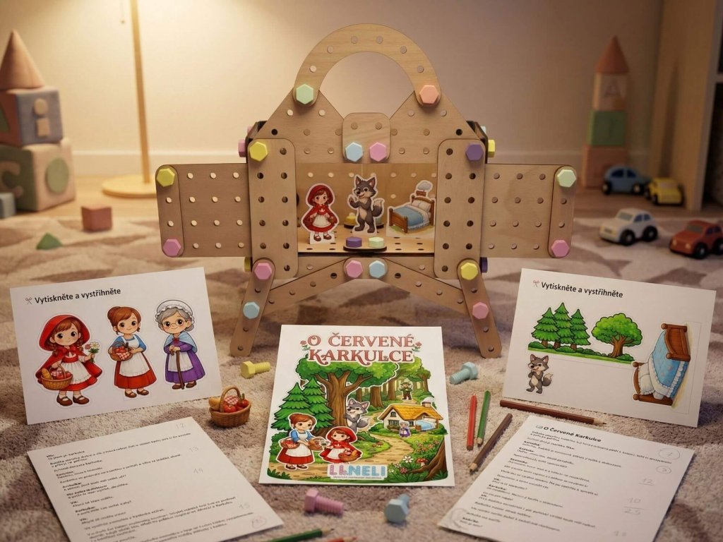Tato sada s pohádkou je skvělým doplňkem k divadélku postavenému ze stavebnice Li&Neli. Děti si díky ní mohou vytvořit vlastní loutky a zahrát si malé pohádkové představení přímo ve svém pokojíčku.
