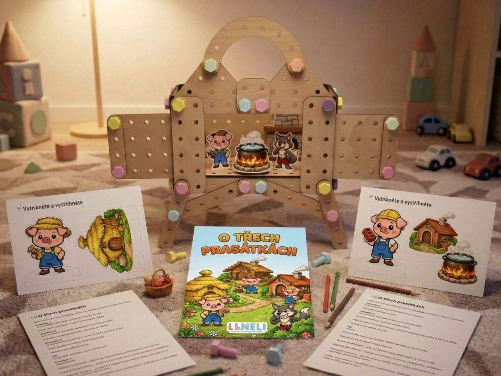 Tato sada s pohádkou je skvělým doplňkem k divadélku postavenému ze stavebnice Li&Neli. Děti si díky ní mohou vytvořit vlastní loutky a zahrát si malé pohádkové představení přímo ve svém pokojíčku.