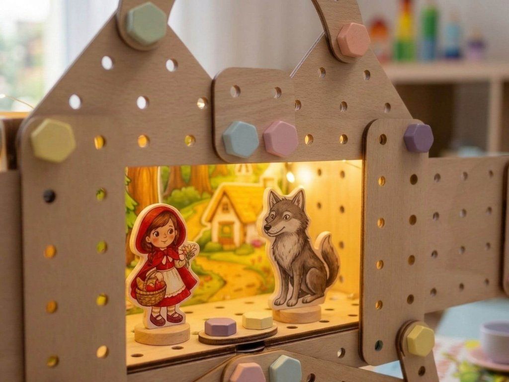 Divadélko ze stavebnice Li&Neli otevírá dětem úplně nový způsob hry. Z jednotlivých dílků si mohou postavit vlastní malé jeviště a během chvíle proměnit pokojíček v pohádkovou scénu, kde ožívají známé příběhy.