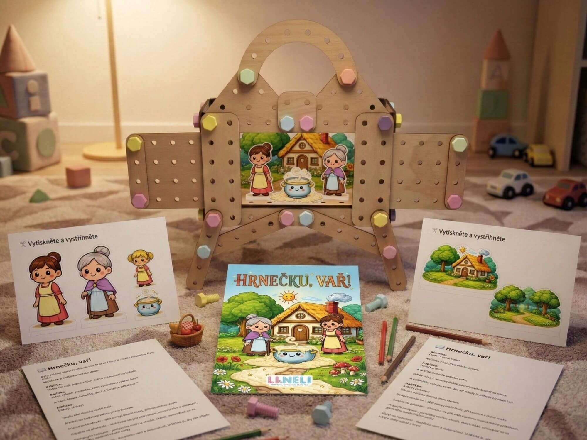 Stavebnice Li&Neli - Sada pro divadélko s pohádkou Hrnečku, vař!