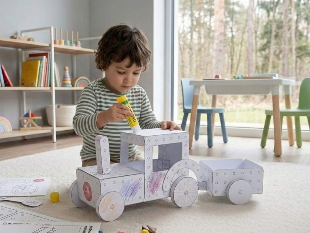Tahle vystřihovánka je opravdu velká! Má poměr 1:1 vůči dřevěné stavebnici Li&Neli, takže si postavíte z papíru přesně to, co byste zvládli i s reálnou stavebnicí. Po zakoupení od nás obdržíte PDF soubor s celkem 30 stranami formátu A4, které jsou doslova napěchované dílky. Celkem tam najdete více než 186 dílků!